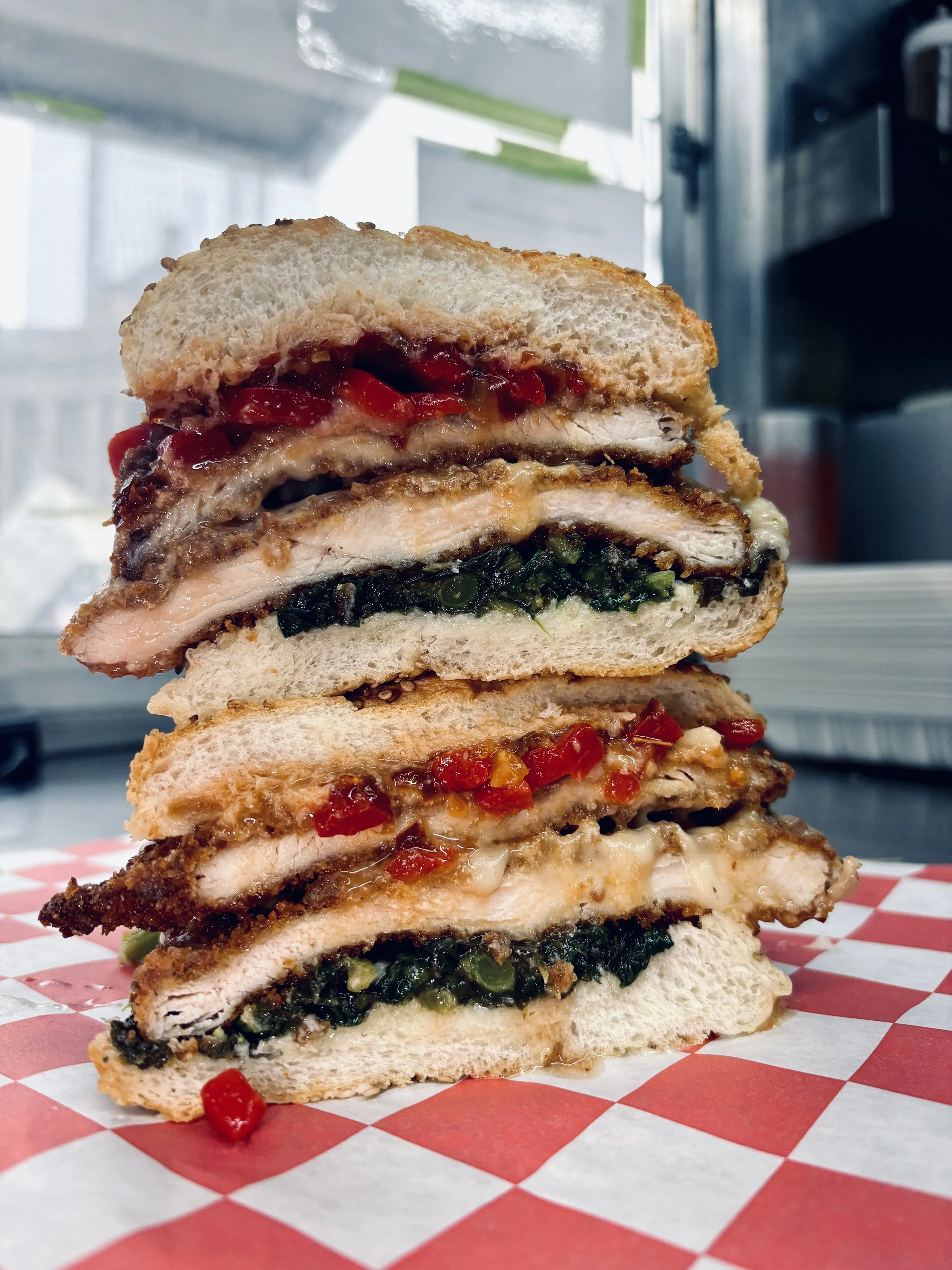 Things are heating up at Gillette stadium so we decided to bring the heat to the food truck, as well. The Patriot is a bold, no-nonsense sandwich that’s built for a playoff run. Cutlets smothered in spicy alfredo sauce brings the heat to a sandwich packed with championship level flavor. While your enjoying a run to remember led by none other than Drake Maye himself, be sure to enjoy it with the Patriot - a sandwich made for celebrations.